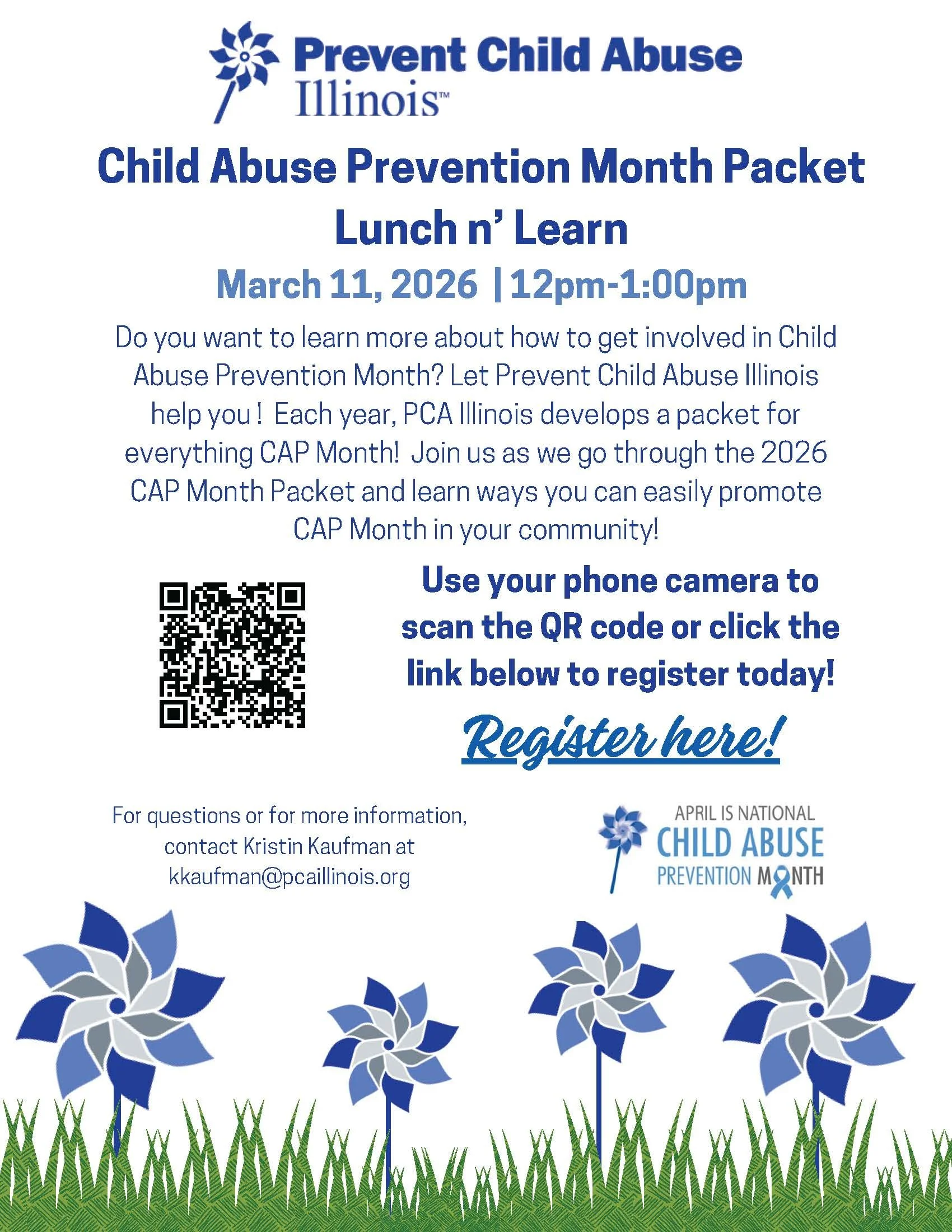 The mission of Prevent Child Abuse Illinois is to prevent child abuse by providing statewide leadership through education, public awareness, support for community initiatives, and advocacy. Click here to learn more.