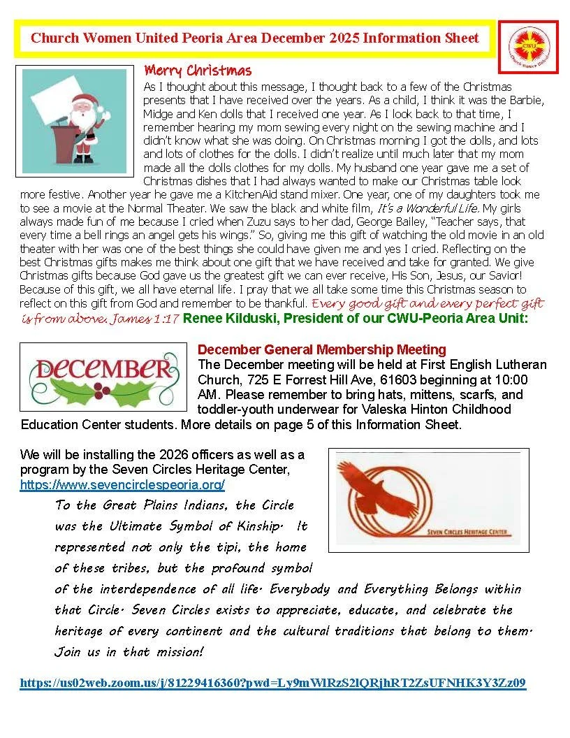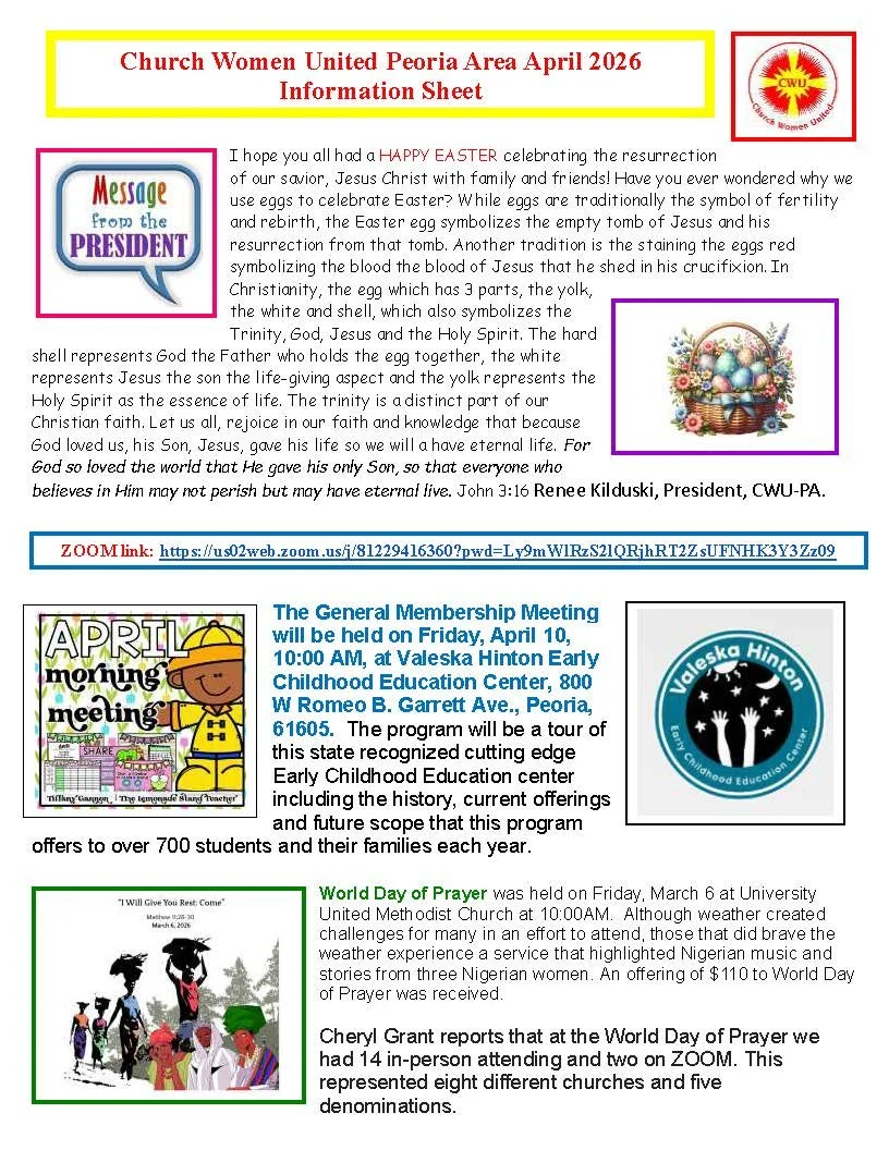 Church Women United is a racially, culturally, theologically inclusive Christian women’s movement, celebrating unity in diversity and working for a world of peace and justice. Founded in 1941, Church Women united is: